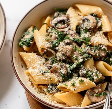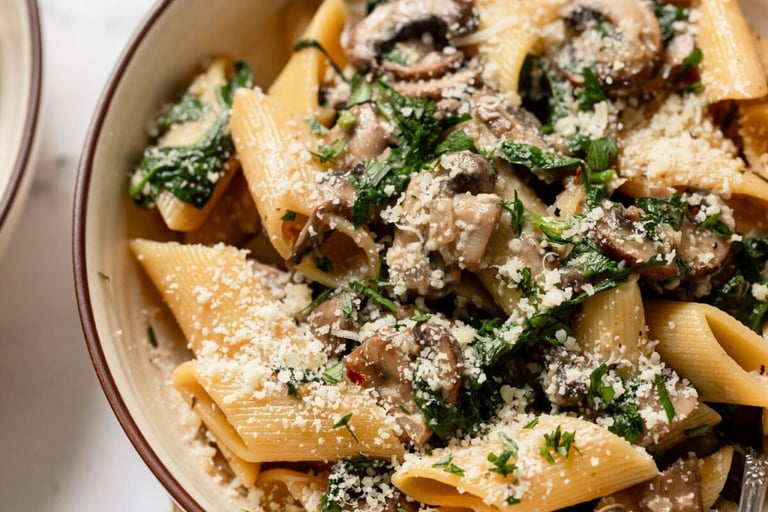 🍝 3. Creamy Spinach & Mushroom Pasta (~360 Calories)