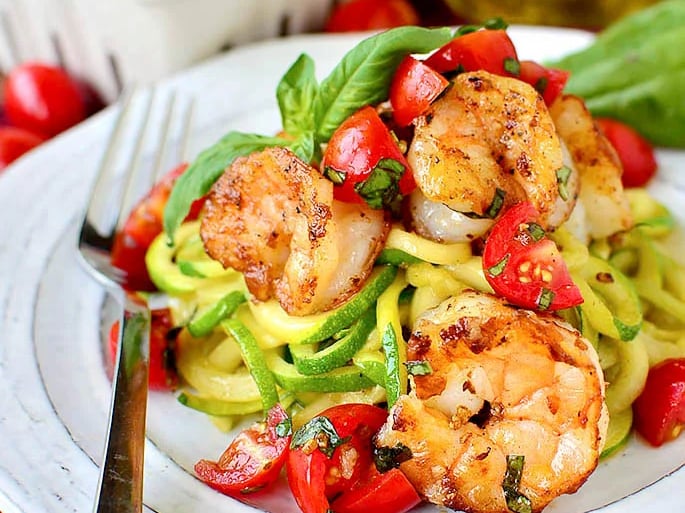 🍤 4. Zucchini Noodles with Shrimp & Tomato (~320 Calories)