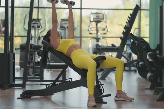 Incline Dumbbell Press β Set the bench to an incline, press dumbbells upward, then lower slowly. Works chest, shoulders, and triceps.