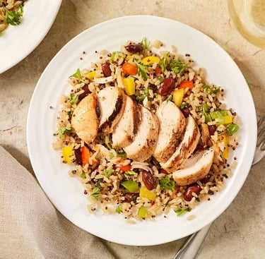 Grill or pan-sear the chicken for 5–6 minutes per side, until fully cooked.Prepare the sides (10 minutes):
